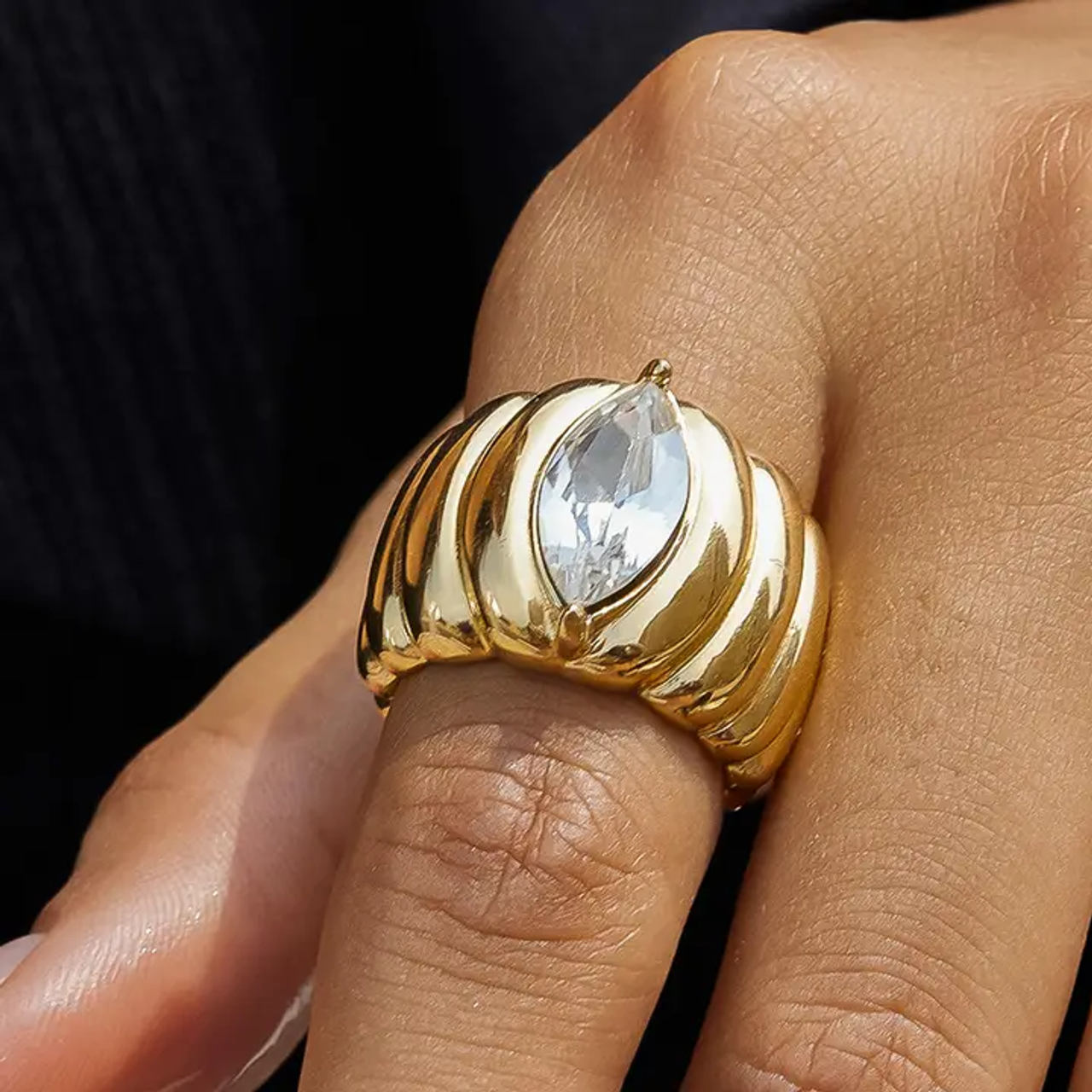 18K Gold Non-Tarnish Marquise Cubic Zirconia Statement Ring