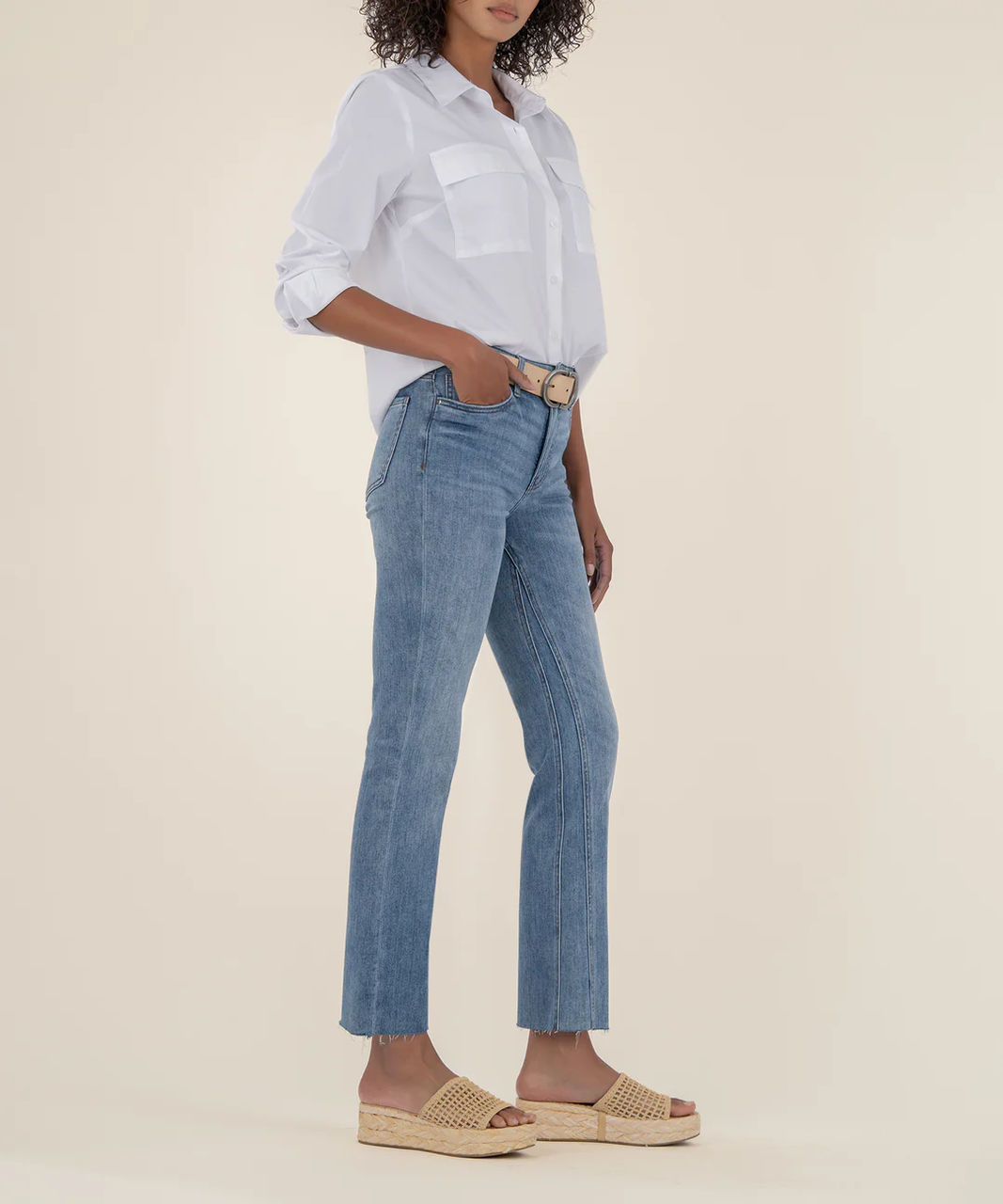 - Flatter your figure with these high rise Fab Ab ankle flare Jeans in a versatile light wash. Designed with our tummy-smoothing Fab Ab technology, they feature a trendy Nest leg, subtle raw hem, and stylish ankle flare for a modern, flattering fit. Perfect for effortless everyday style.