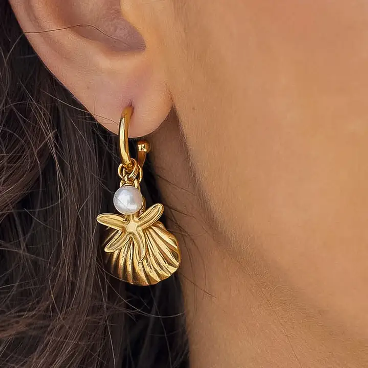 18K Gold Non-Tarnish Sea Shell and Star Earring