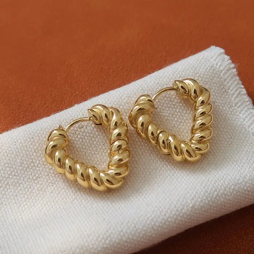 18K Gold Non-Tarnish Twisted Heart Hoop Earrings 18k Gold Plating Stainless Steel
