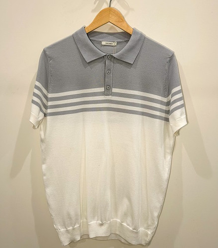 Jakamen Short Sleeve Sweater Polo - Grey/White