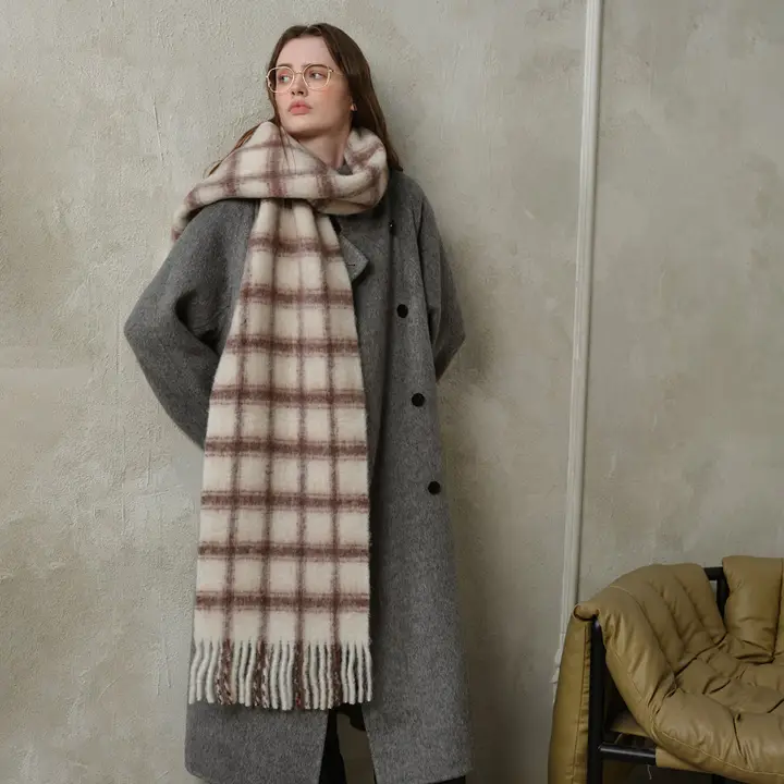 Simple Soft Plaid Scarf - Brown/Cream