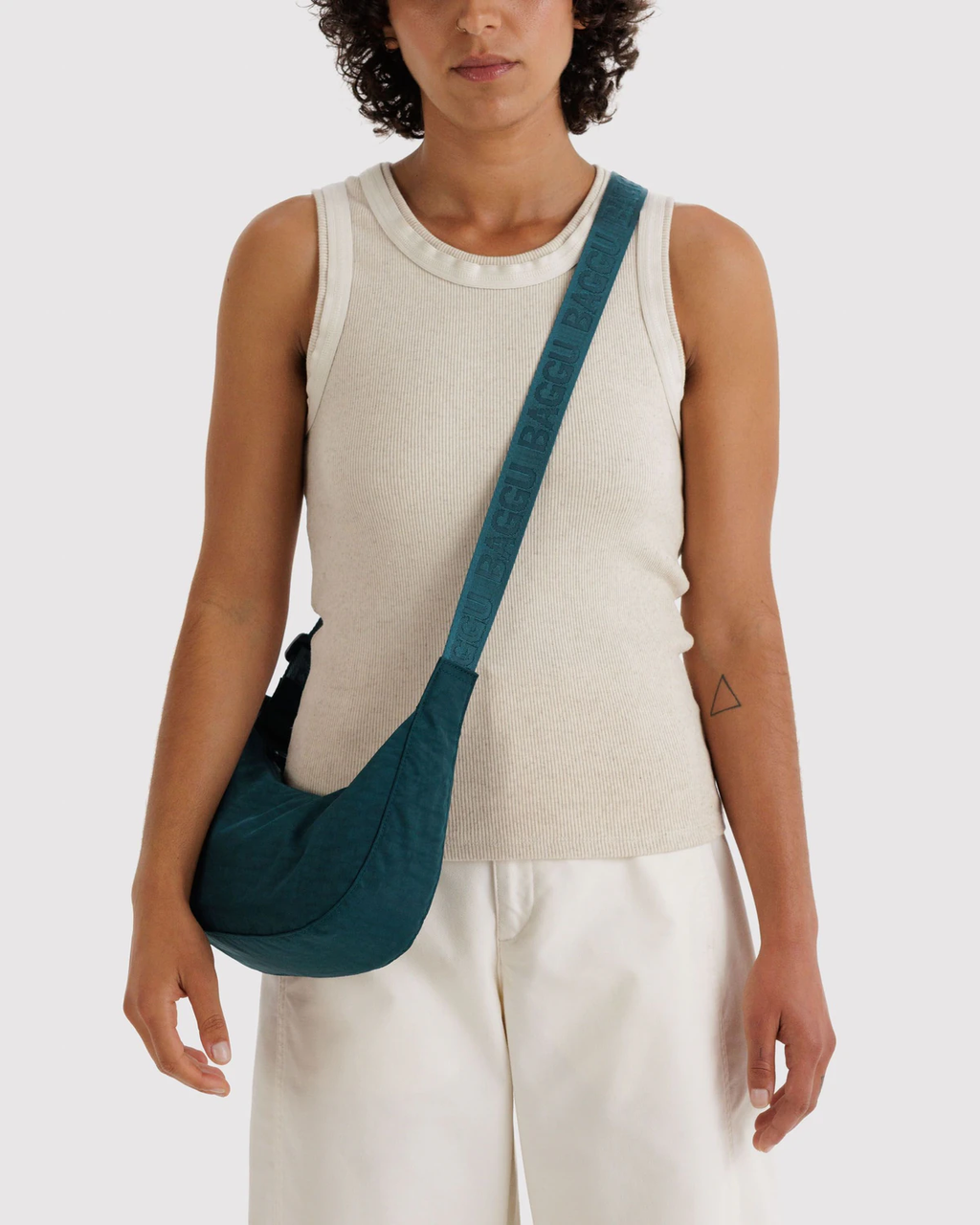 The popular crescent shape, in a smaller size that still fits what you need with room to spare.